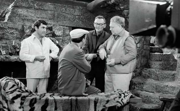 Олег Видов, Эраст Гарин и Евгений Леонов на съёмках «Джентльменов удачи»