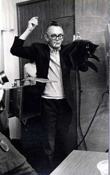 Леонид Гайдай подбрасывает кошку для сцены из фильма «Иван Васильевич меняет профессию»