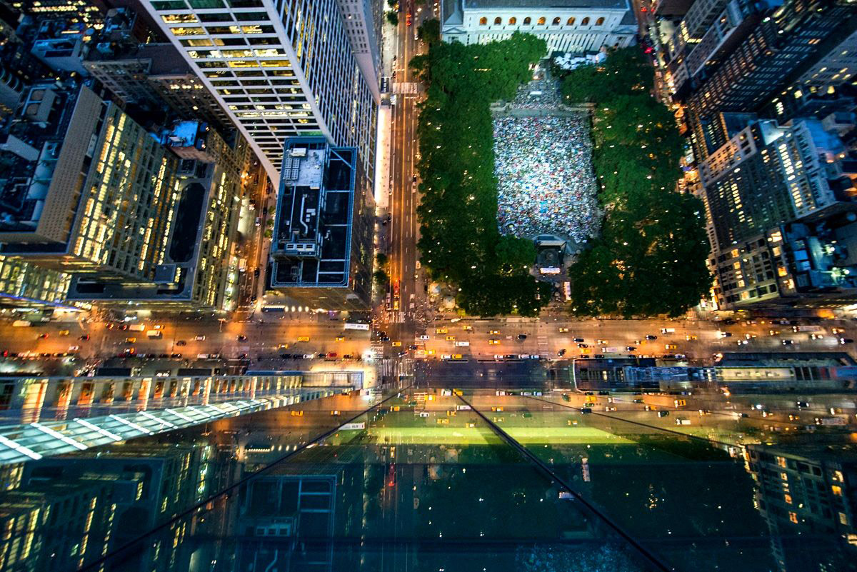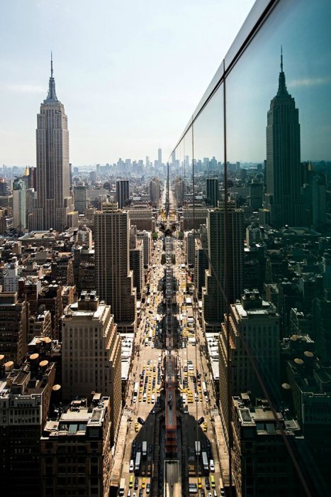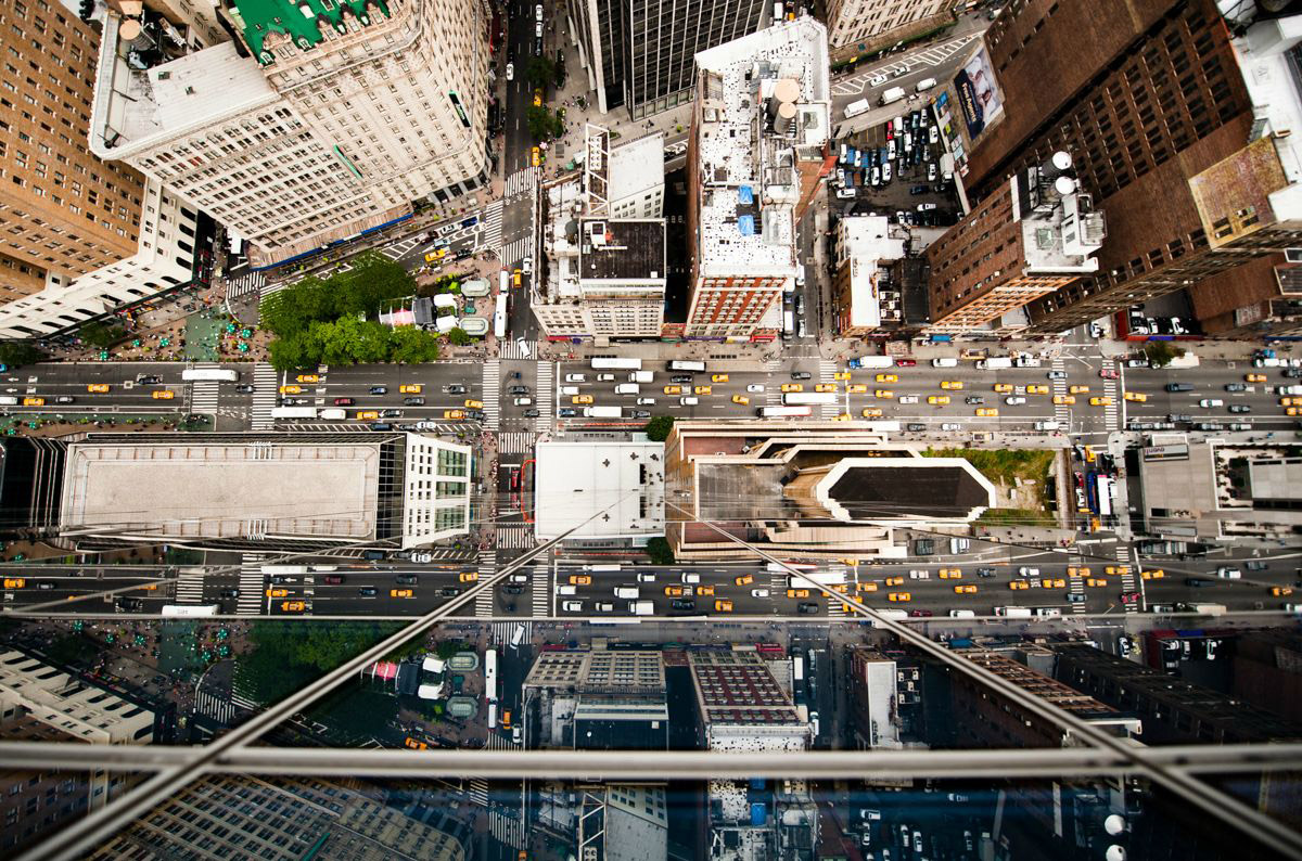 Для того чтобы заснять оживленный Нью-Йорк или Токио, фотографу Нэвиду Барати приходится в буквальном смысле парить над краем. «Я просто наклоняюсь так, чтобы чувствовать себя комфортно во время съемки. Меня больше беспокоит возможность падения моей камеры. Но, чтобы этого не произошло, я ее привязываю к руке», — поведал фотограф.