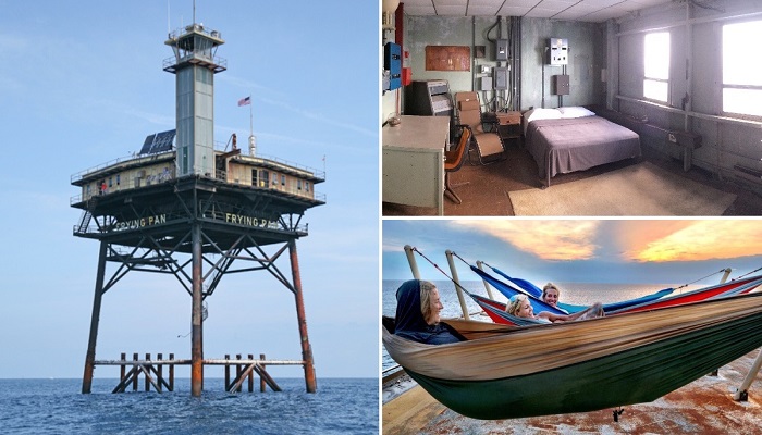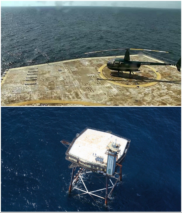 Вертолетная платформа с башней-маяком, принадлежавшая ВМФ США, превратилась в гостиницу для экстремалов. | Фото: wbdiving.com/ atlasobscura.com.