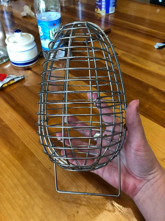 «Яйцевидная клетка из проволоки, закрывается на защелку. Найдена на кухне бабушки друга, никто в семье не знает, что это такое»