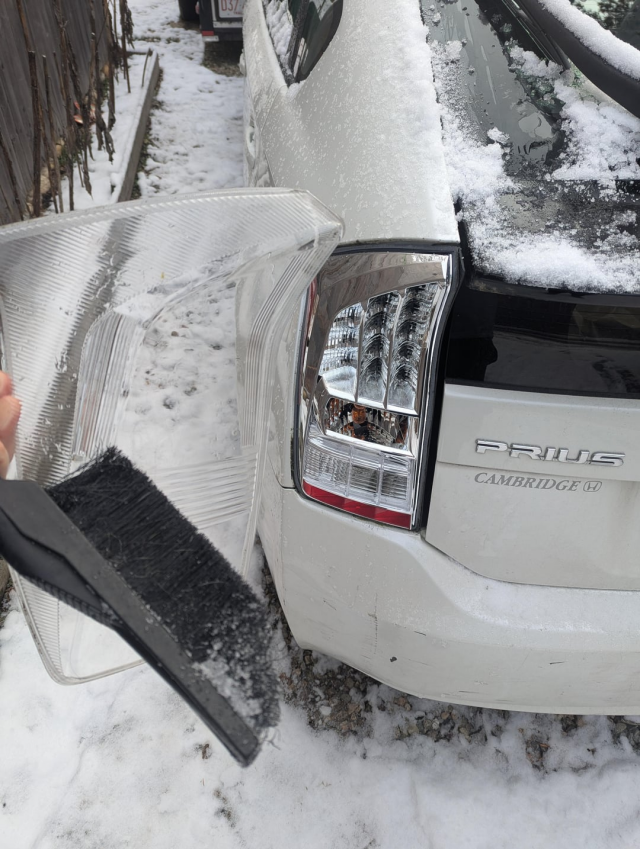 «Собирался на работу в первый день после праздников и случайно оторвал кусок фары, отчищая её от снега»