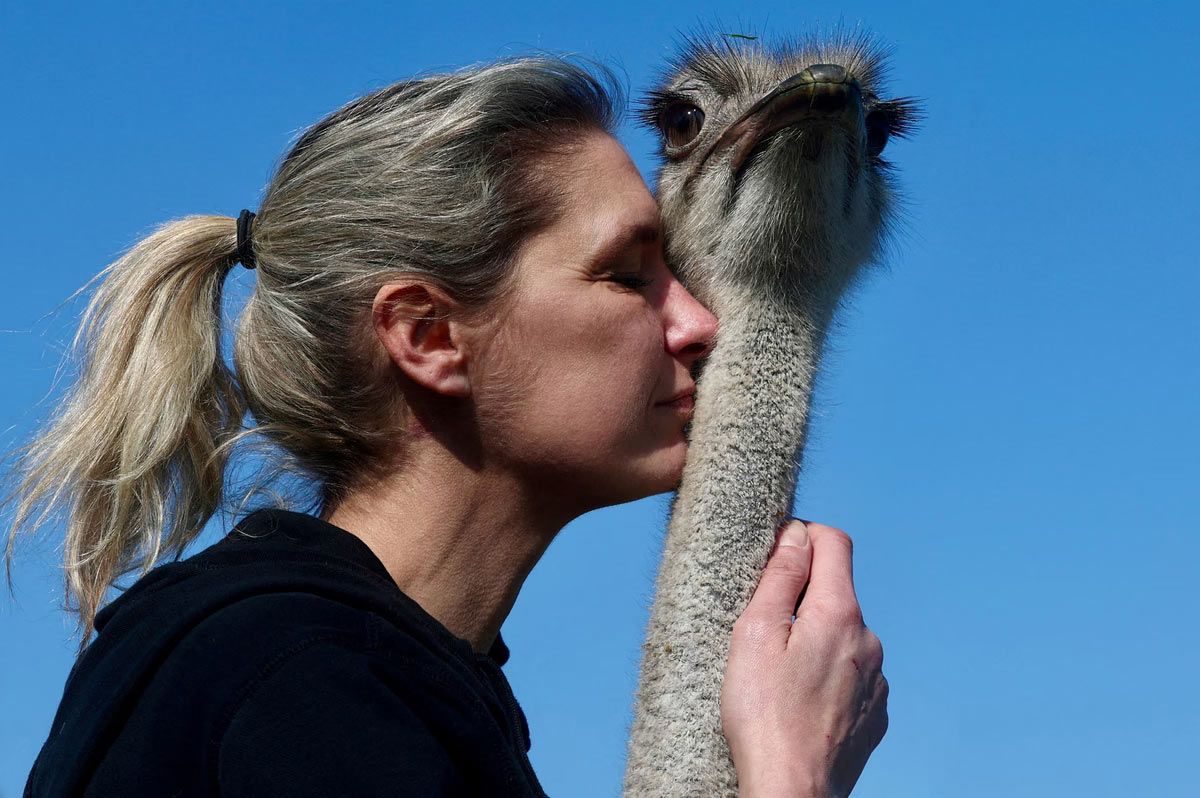 Ферма по спасению животных и шестилетняя самка страуса, в Калмтхоуте, Бельгия. (Фото Yves Herman):