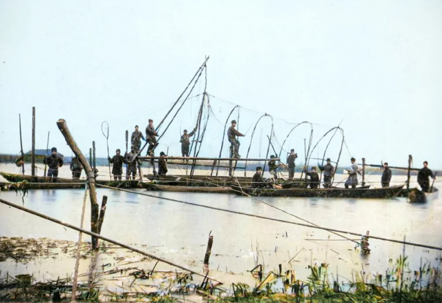 Рыболовные промыслы, постановка вентеря. Станица Славянская, начало ХХ века.