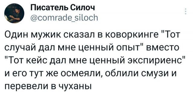 Подборка смешных твитов обо всем на свете 17/01/2025 23:30 Что мне снег, что мне зной, что мне дождик проливной? А вот новая подборка веселых твитов — она точно поднимет вам настроение! Так что, друзья, расслабьтесь и наслаждайтесь. Всем приятного просмотра! Главная / Картинки +3 Admin 0 265