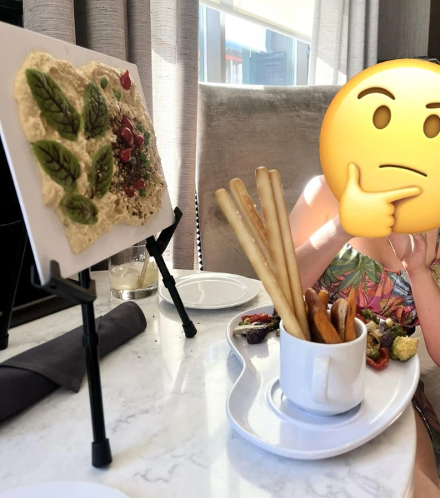 «Мы заказали тарелку хумуса в самом обычном гостиничном баре. Нам принесли его на настоящем холсте для картин»