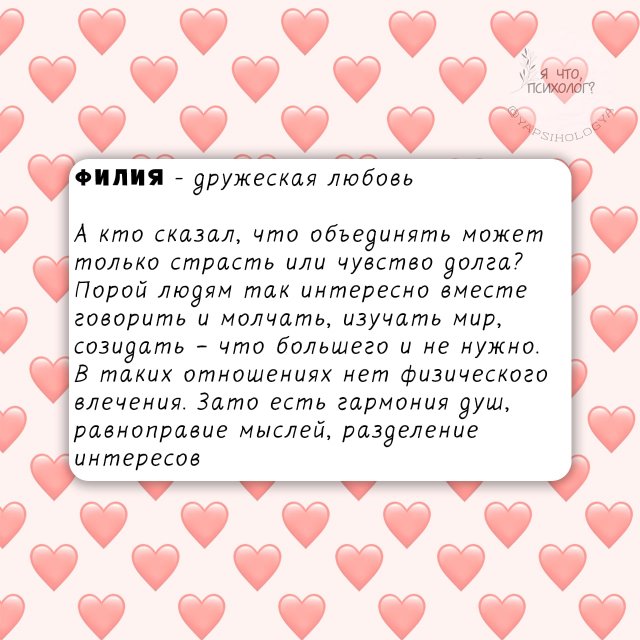 Типы любви: какие они бывают? 22/01/2025 23:00 Многие не подозревают, что любовь делится на разные типы. Например, есть агапе, филия, прагма и сторге. Чем они отличаются друг от друга? Об этом вы узнаете в нашей статье. Главная / Картинки 0 Admin 1 213