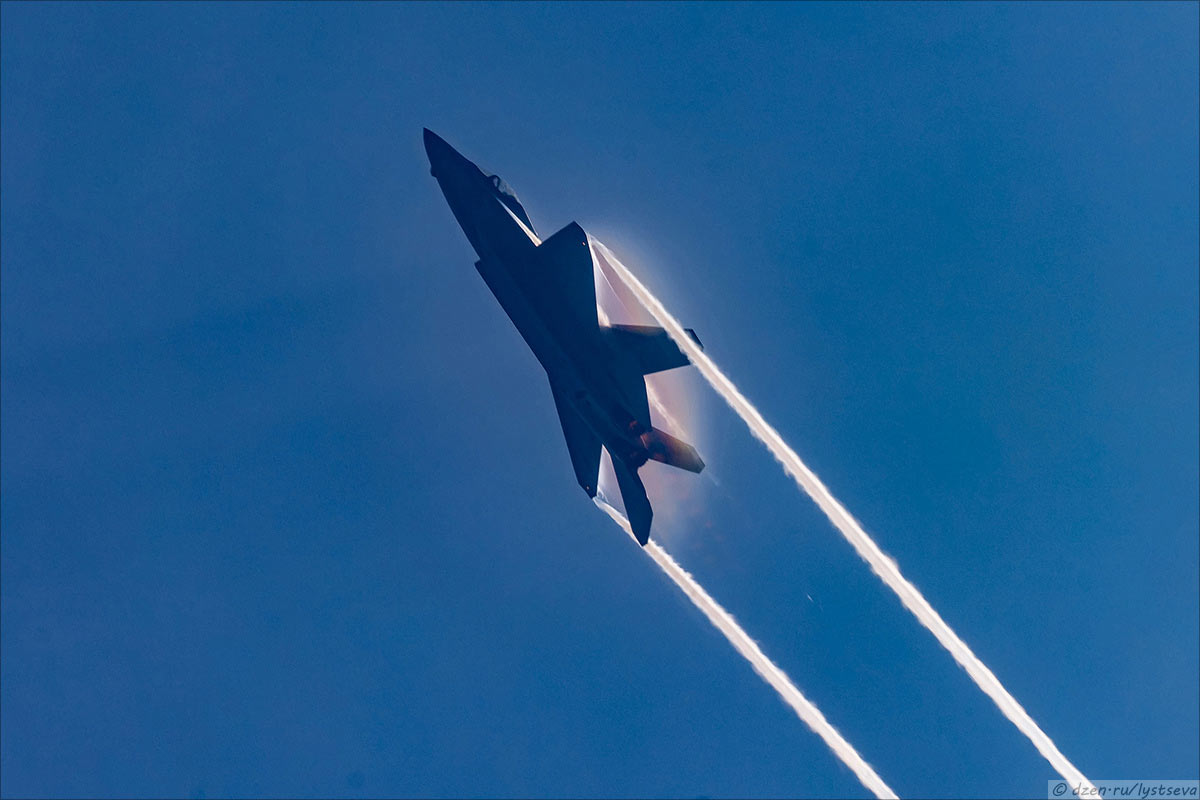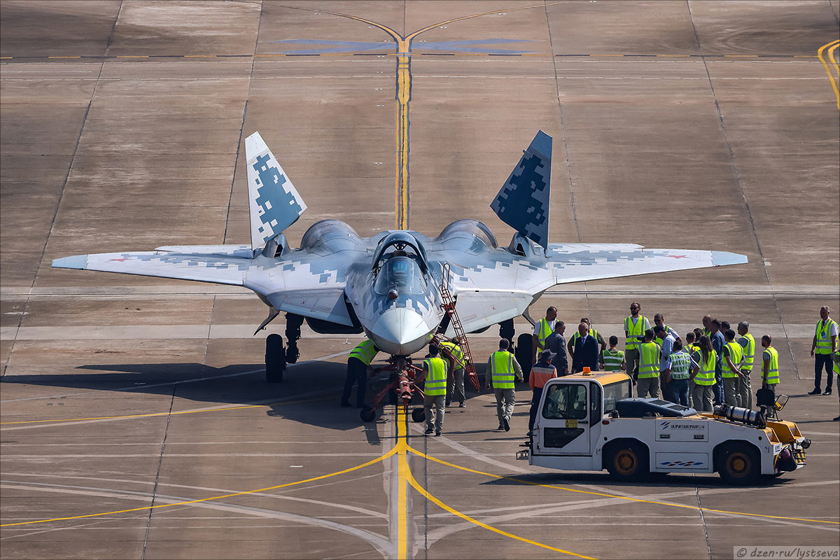 Впервые на международной арене был показан российский Су-57 пятого поколения, который пилотировал Сергей Богдан.