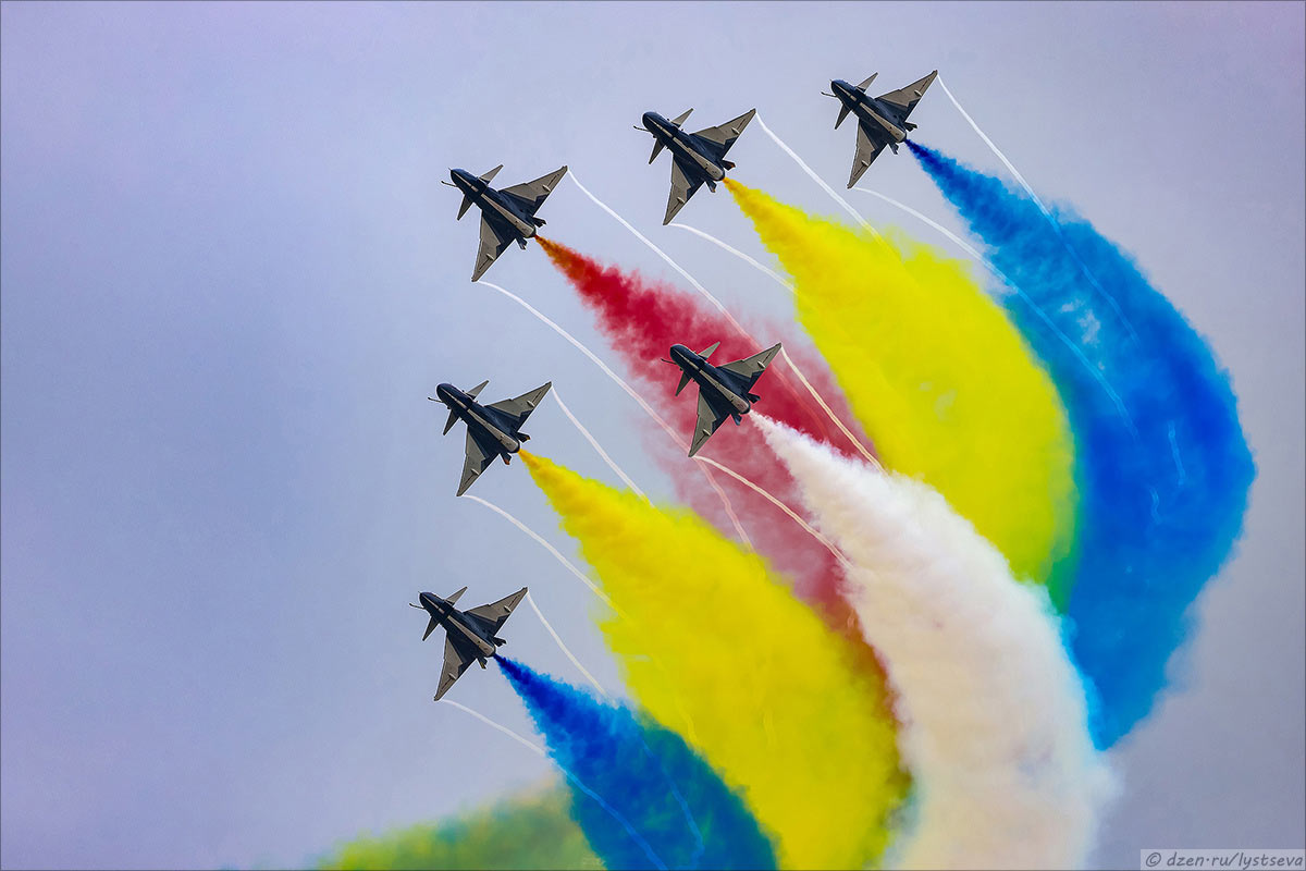 С китайской стороны главной пилотажной группой является «August 1st» (“1 Августа”), которая выступает на истребителях национального производства J-10C.