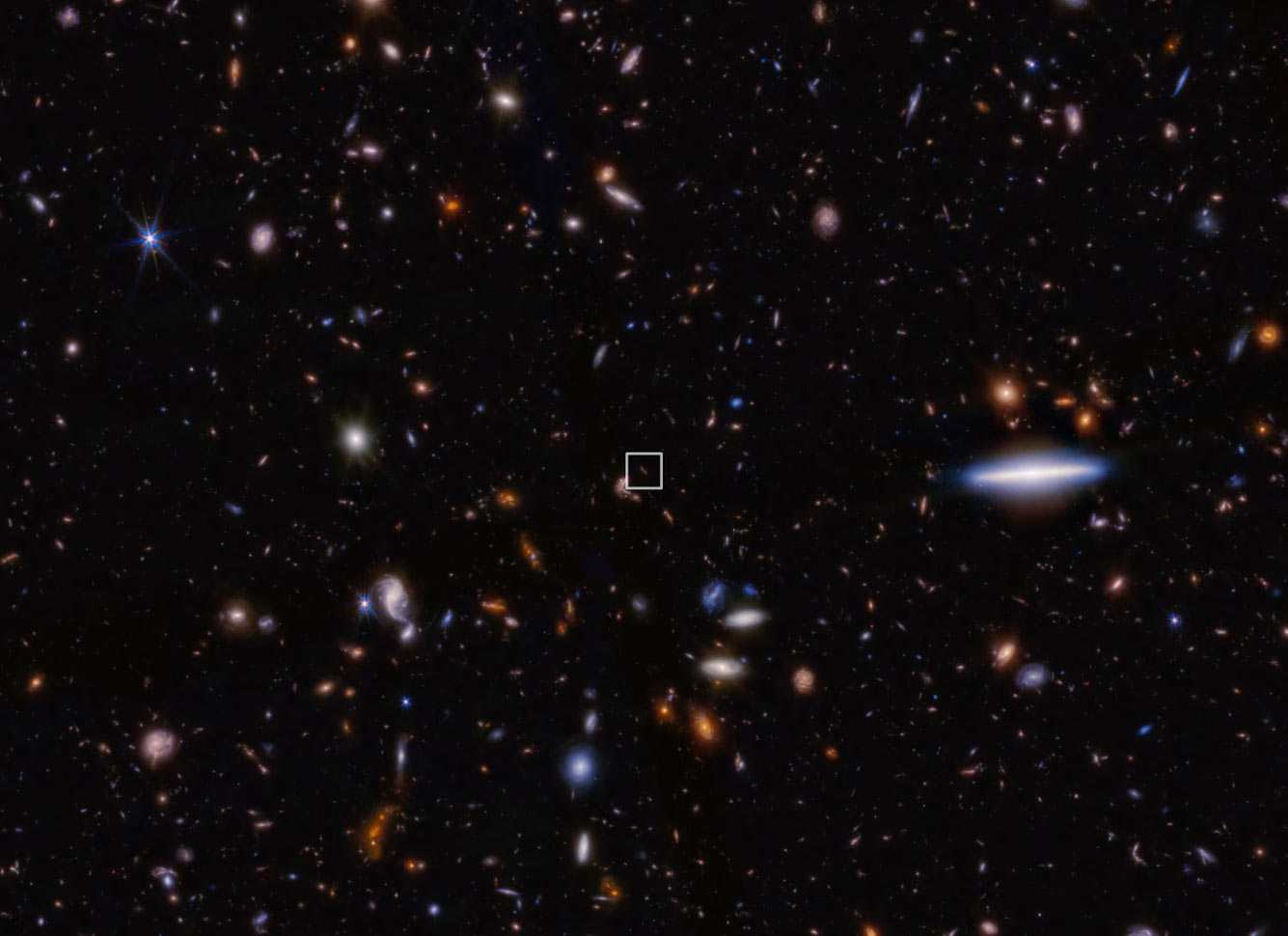 Используя космический телескоп Джеймса Уэбба, ученые обнаружили рекордно далекую галактику, наблюдаемую всего через 290 миллионов лет после Большого взрыва. Если, конечно, теория Большого взрыва верна. (Фото NASA, ESA, CSA, STScI, J. Olmsted, S. Carniani, JADES Collaboration):