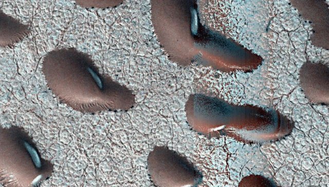 Обнародованы снимки с аппарата Mars Express и зонда Mars Reconnaissance Orbiter, демонстрирующие "зиму" на Марсе. Хотя технически это не снег, а углекислый газ, который под воздействием солнечного света изо льда превращается в газ. Летнее время на Марсе зафиксировало температуры до -125 °C.