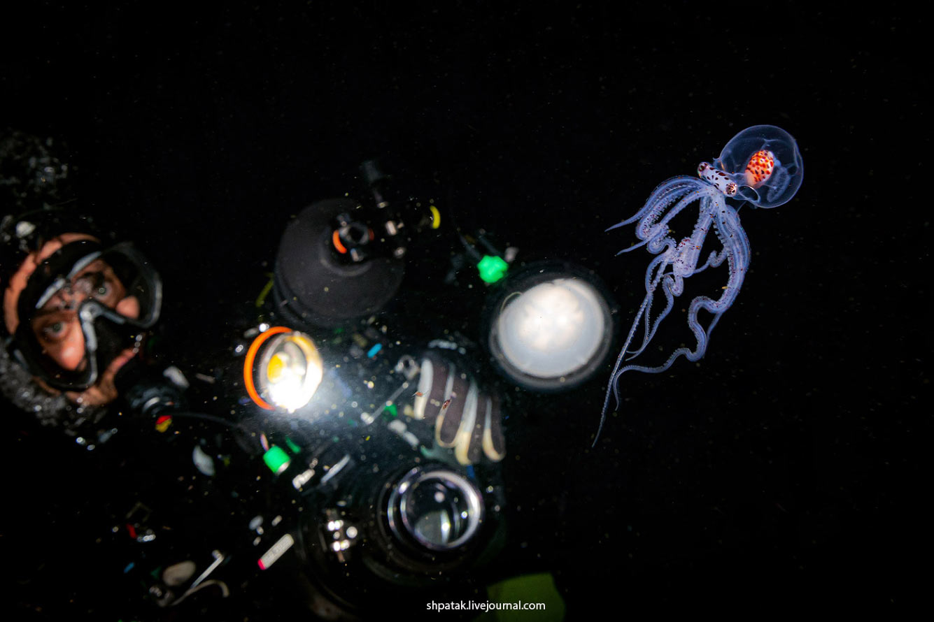 Анилао. Черная вода. Фотограф и молодь осьминога Вандерпуса: