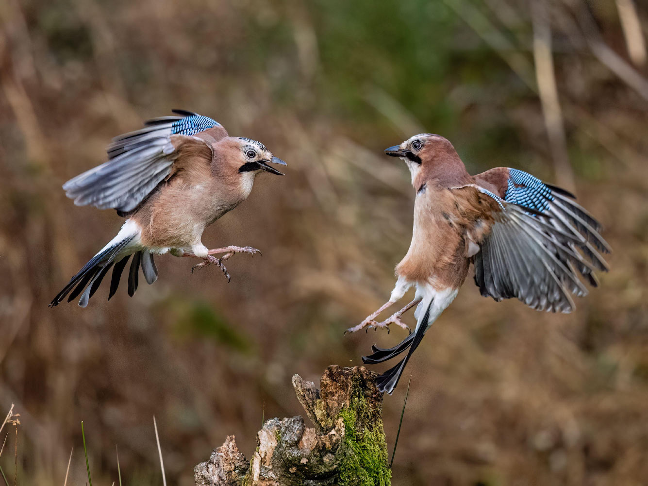 Сойки дерутся возле кормушки для птиц в Аберистуите, Уэльс. (Фото Philip Jones):
