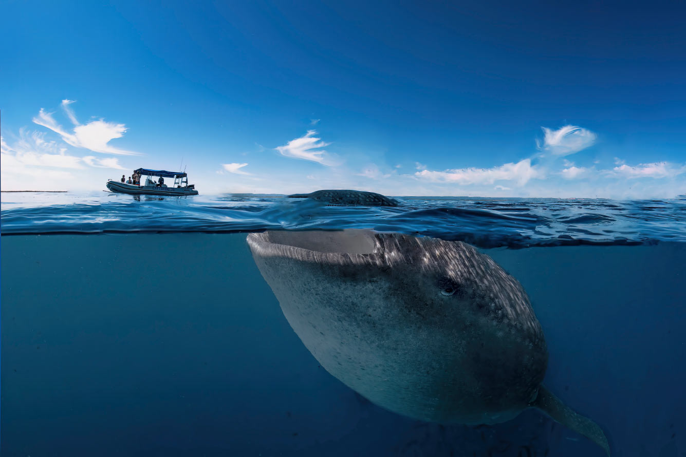 Фотограф Герберт Футтеркнехт использует удачные ракурсы, чтобы создать иллюзию того, что китовая акула собирается целиком проглотить лодку. (Фото Herbert Futterknecht):
