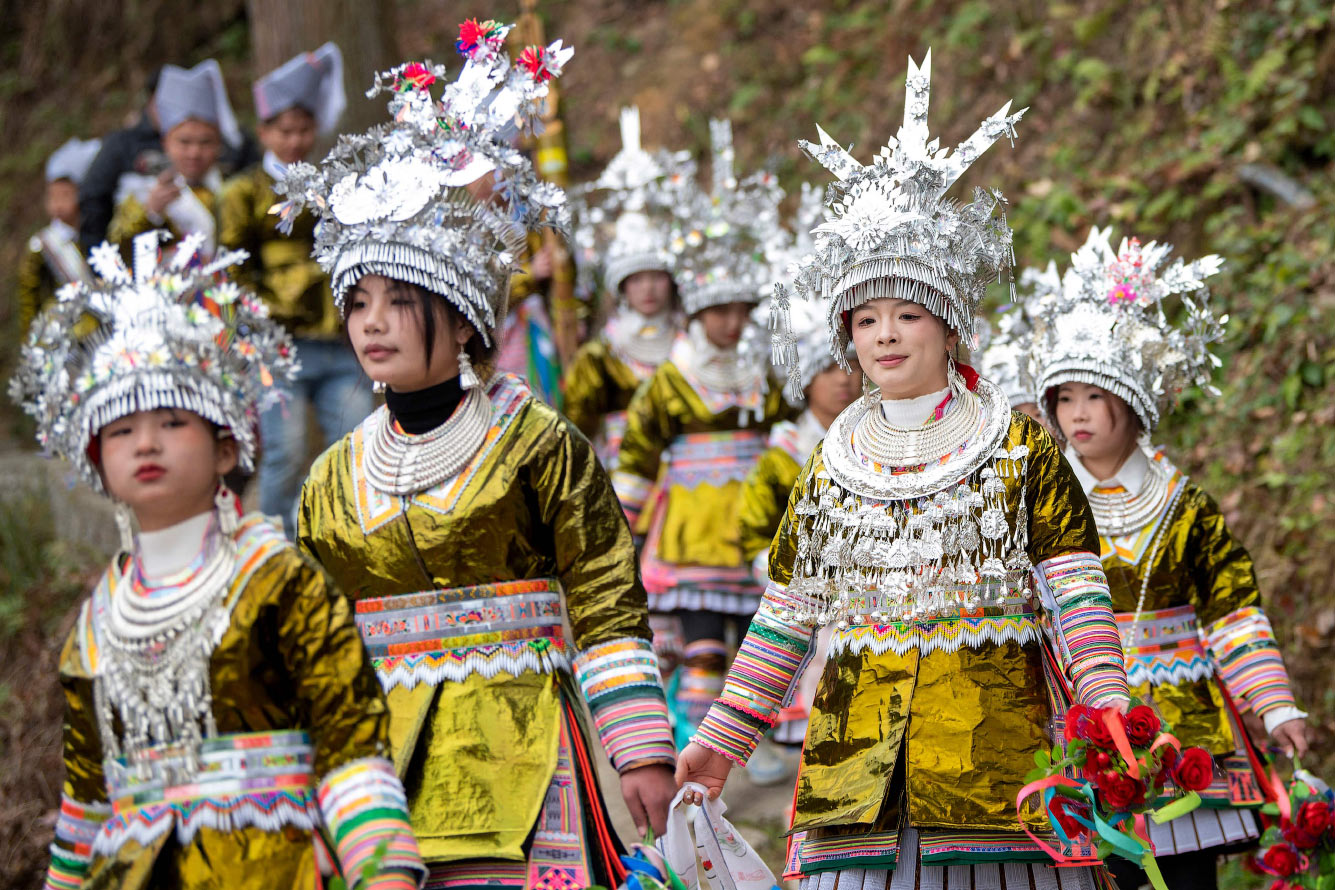 Представители этнической группы Мяо, посещающие культурное празднование Нового года в рамках фестиваля Лу Шэн в уезде Цунцзян, Цяньдуннань-Мяо-Дунского автономного округа, в провинции Гуйчжоу на юго-западе Китая. (Фото China Stringer Network):