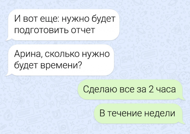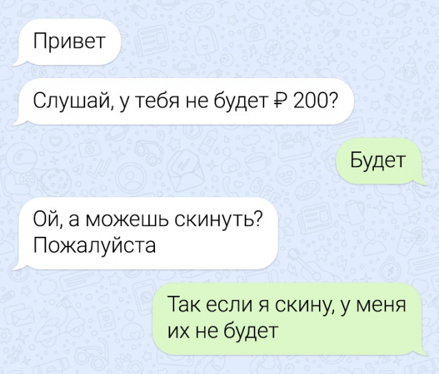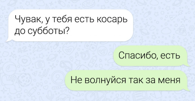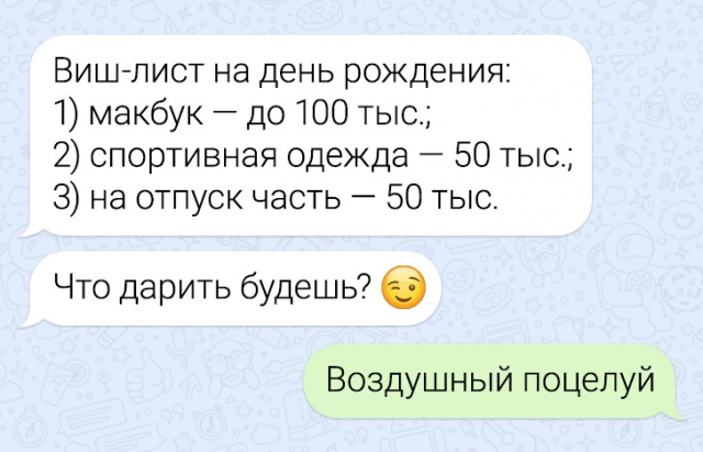 Новая порция забавных переписок 14/02/2025 23:30 Давненько мы не радовали вас подборкой веселых сообщений, и пора это исправить! Смех продлевает жизнь, так что отвлекайтесь от забот, читайте, улыбайтесь и делитесь любимыми моментами с друзьями. Главная / Картинки +5 Admin 0 282