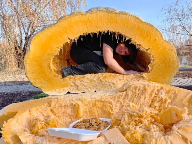 "Ничего необычного, просто я нахожусь внутри тыквы весом 817 кг"