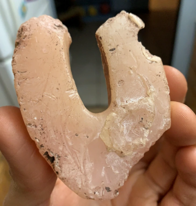"Нашел эту розовую штуку в заброшенной шахте. На минерал не похожа, скорее на воск. Еще на на ней есть следы укусов"