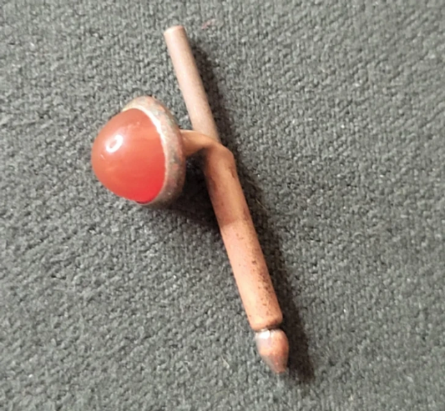 «Эта вещица была найдена в коробке с деталями. Похожа на коровий колокольчик, но не звенит! Она около 5 см и довольно легкая»