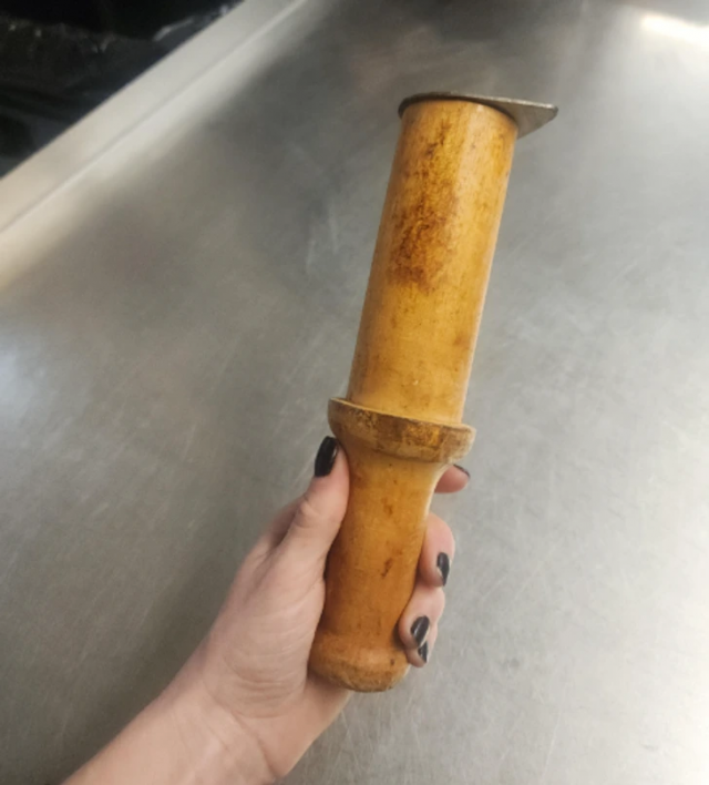 "Я работаю на кухне в очень старом здании. Нашел вот эту штуку, но не пойму для чего она. Может скалка какая-то?"