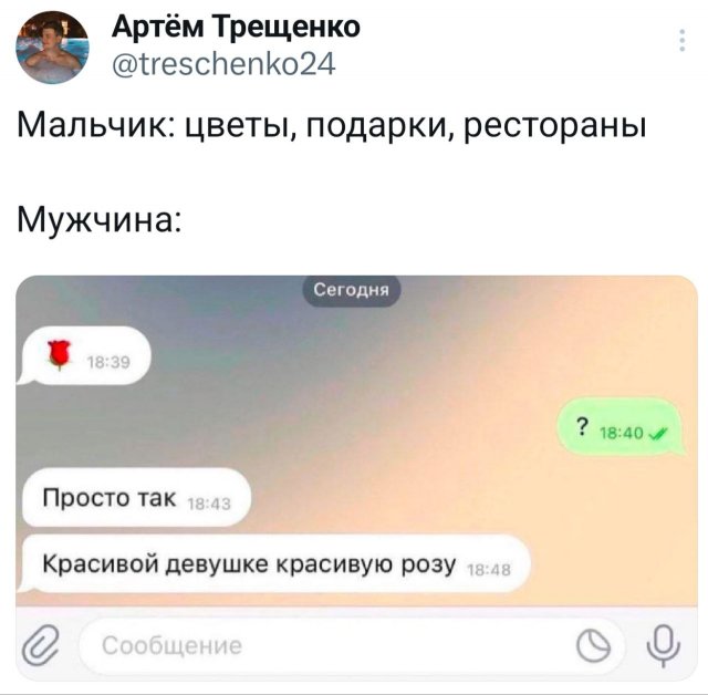 Подборка забавных твитов от ярких личностей 20/02/2025 23:30 Вот и новая порция веселых твитов от пользователей интернета, которые не перестают радовать нас своим юмором. Воспользуемся моментом и посмотрим, что интересного они подготовили сегодня! Главная / Картинки +1 Admin 0 268