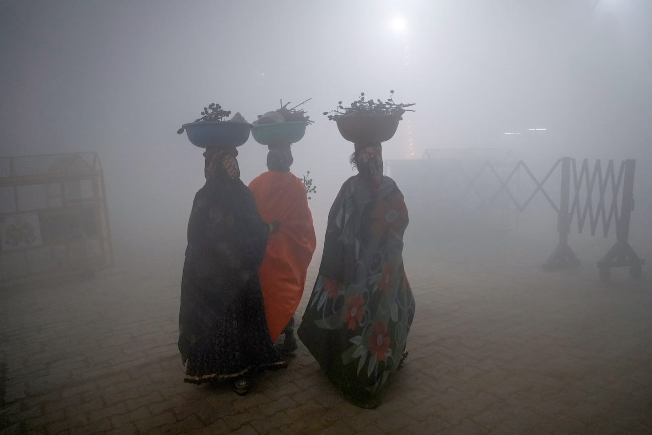 Верующие индуисты прибывают, чтобы совершить священное омовение в Сангаме в туманный день. (Фото Deepak Sharma):