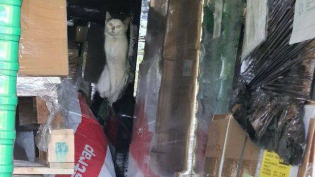 Когда в конечной точке открыли контейнер, там сидел оголодавший и не доверяющий никому пушистик. Кота удалось поймать в клетку только с помощью еды. Сейчас он под присмотром волонтёров.