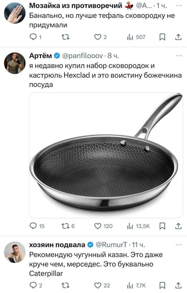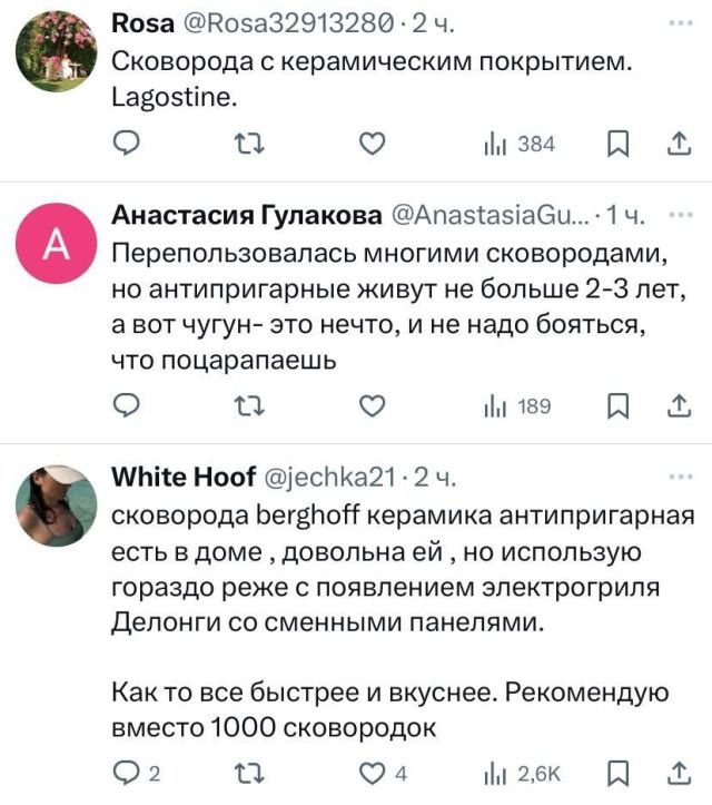 Не все обсуждения в соцсетях сводятся к шуткам – иногда поднимаются действительно важные вопросы. Например, какая сковорода самая лучшая? Пользователи поделились своими рекомендациями, а какой вариант выбираете вы?