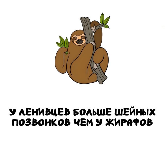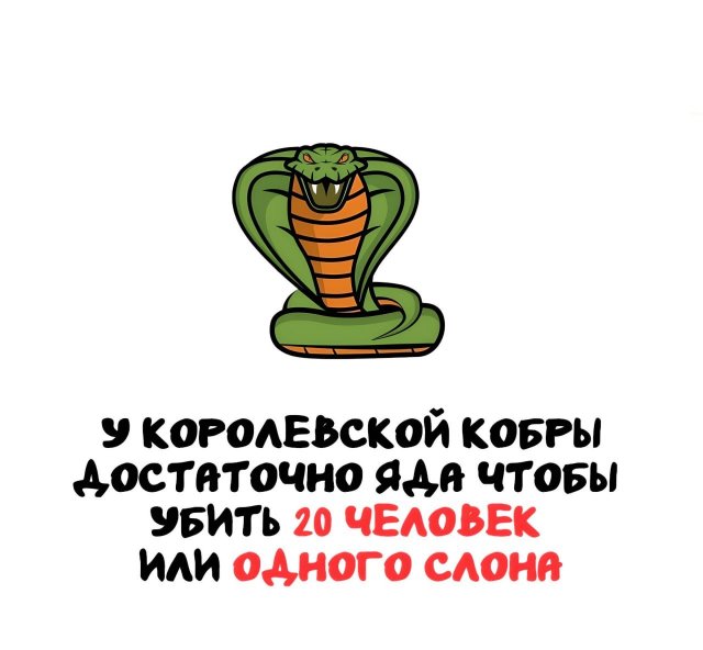 Любопытные факты на каждый день 28/02/2025 22:00 Сколько времени мы тратим на работу за всю жизнь? У кого больше шейных позвонков: у жирафа или у ленивца? Может ли укус королевской кобры убить слона? Ответы на эти и другие вопросы найдете в нашей новой подборке интересных фактов. Главная / Картинки +2 Admin 0 153