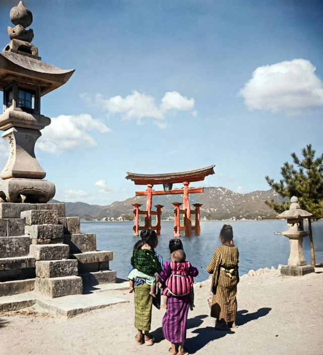 Ворота святилища на острове Миядзима. Япония, 1930 год.