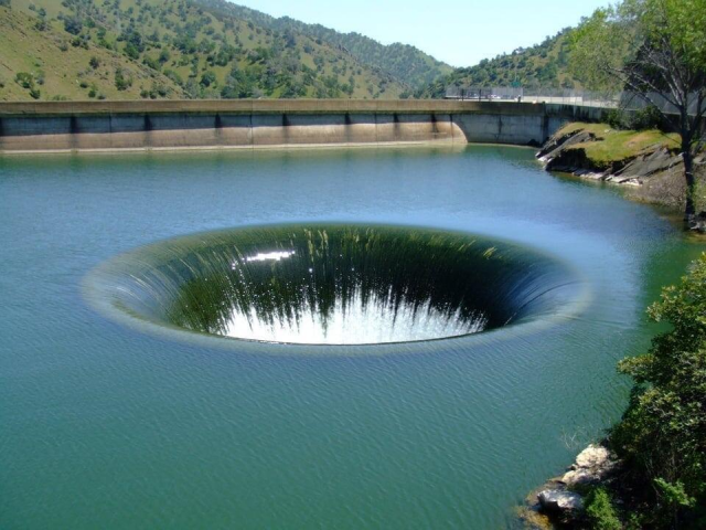 Уникальный гидрослив, который установлен посреди озера Берриесса. Его глубина составляет примерно 21 метр, а диаметр 22.