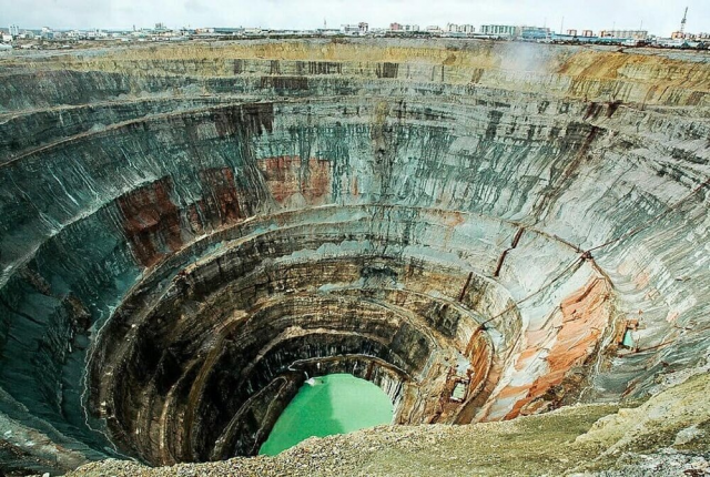 Одна из самых удивительных рукотворных дыр на планете. Её площадь оценивается в 20 квадратных километров. Глубина карьера не менее впечатляющая — 525 метров.