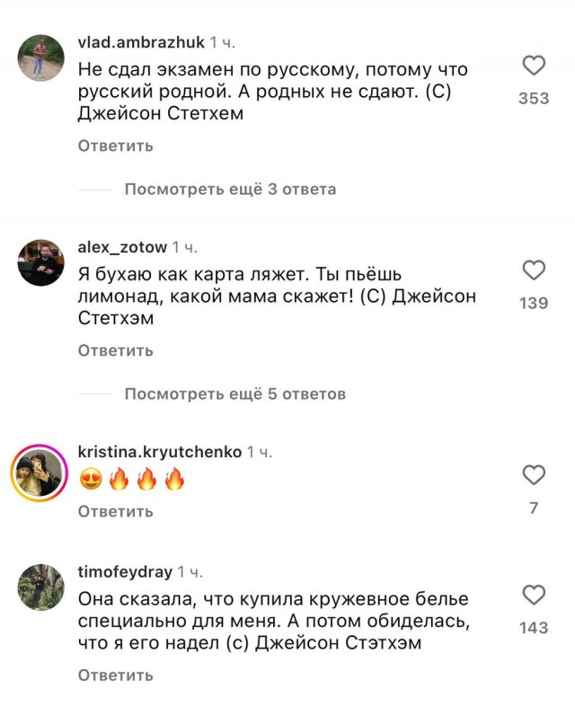 Существует место стабильности и умиротворенности, где все идет своим чередом, и ничего не меняется. Речь идет, конечно, о социальных сетях Джейсона Стейтема, где каждое новое фото вызывает сотни комментариев с его цитатами… которые он, скорее всего, никогда не произносил.