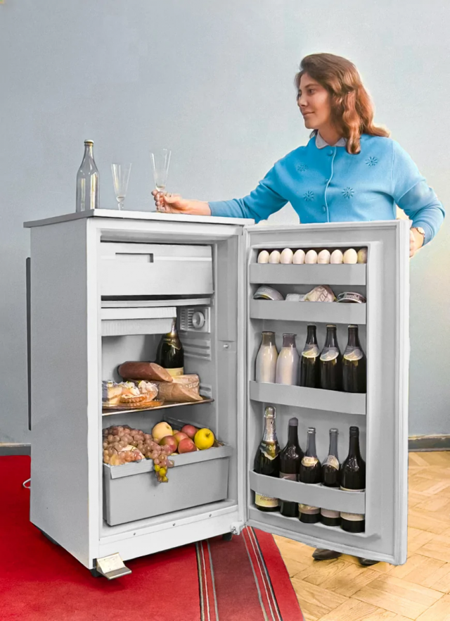 Рекламное фото холодильника Кишиневского завода. СССР, 1970 год.