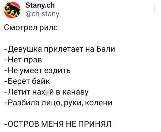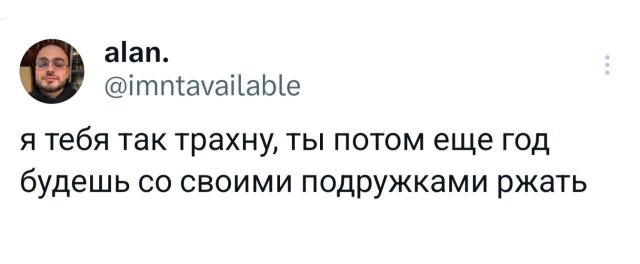 Смешные твиты на любые темы 13/03/2025 23:30 Предлагаем вам свежую подборку забавных твитов, которые поднимут вам настроение и позволят немного расслабиться. Не будем тратить время на вступления – наслаждайтесь! Главная / Картинки +1 Admin 0 175