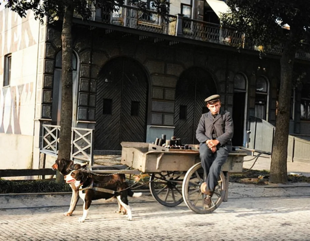 Повозка, запряженная собаками, Нидерланды, 1904 год.
