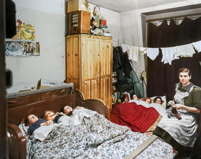 Многодетная семья, живущая в Париже. Фотография из серии: «Париж и парижане на снимках Жана-Филиппа Шарбоннье», 1952 год.