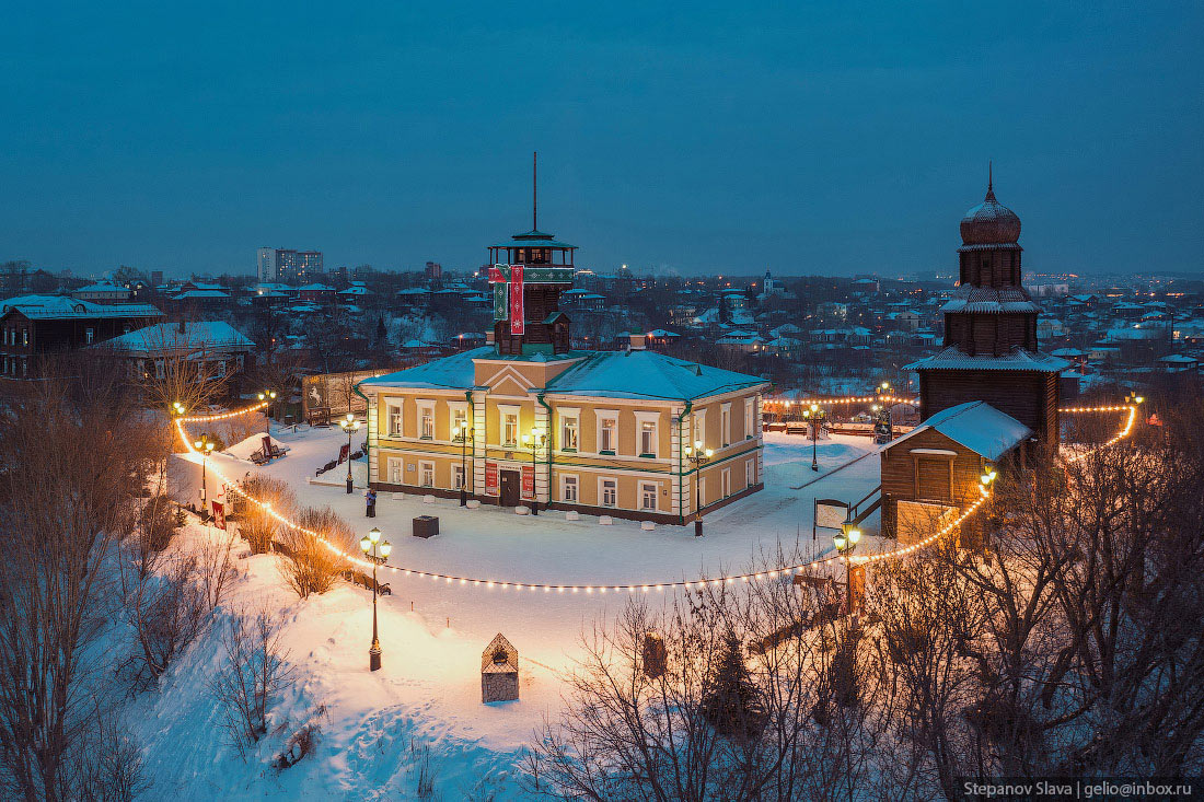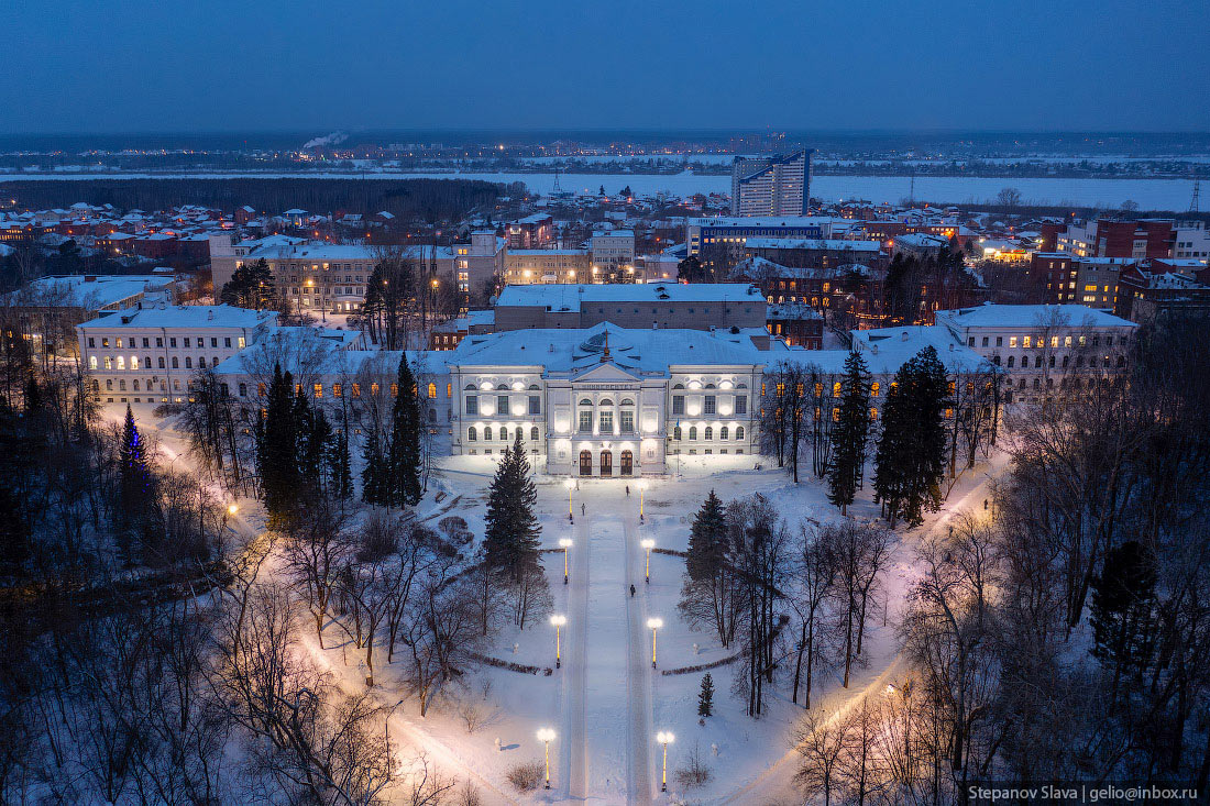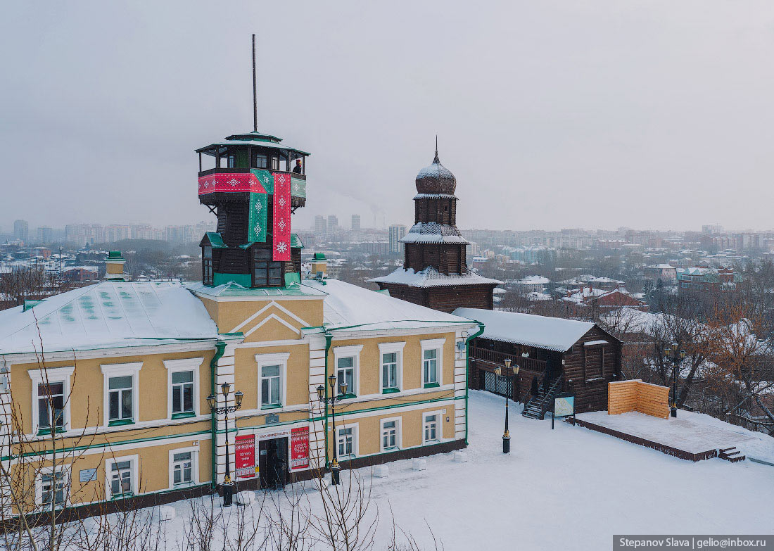 42. Музей истории Томска располагается на южном мысе Воскресенской горы, где в 1604 году была построена первая крепость и началась история города. Здание музея было возведено в 1859 году для полицейской управы.