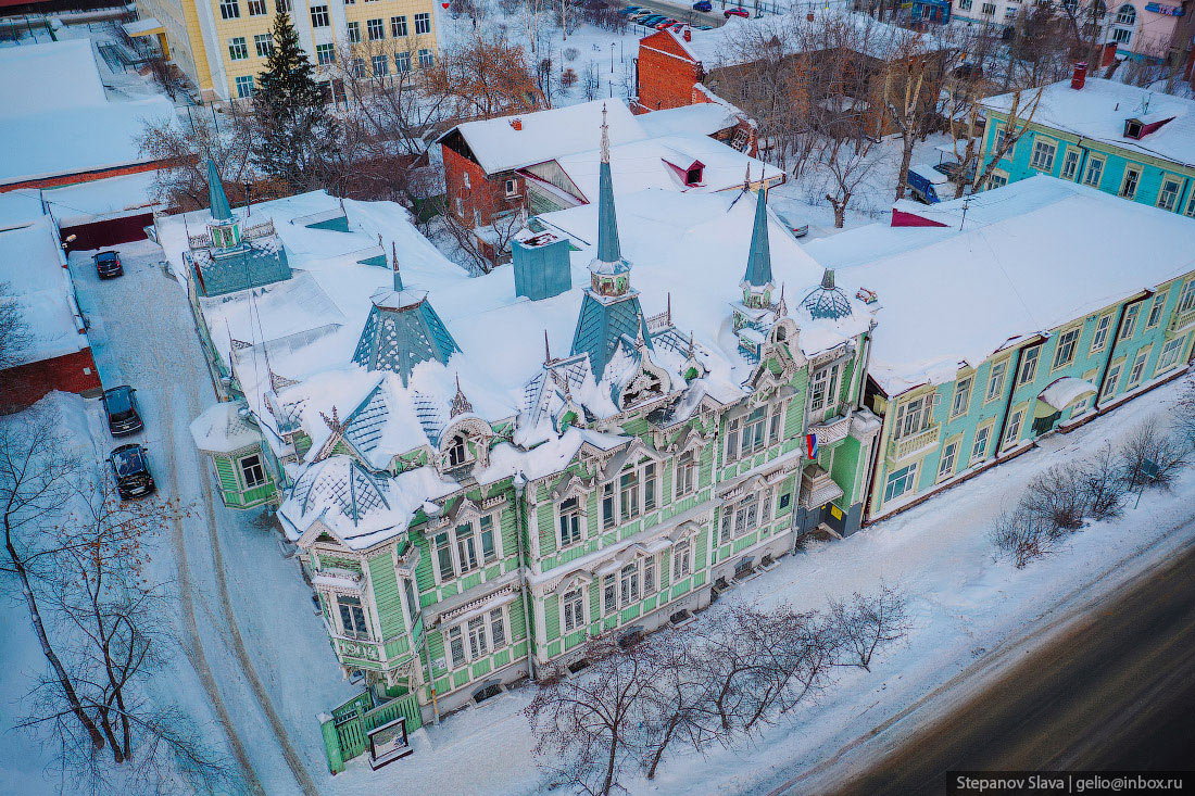 21. «Дом с Жар-птицами». Деревянный узор эркера послужил мотивом для эмблемы юбилейных торжеств в честь 400-летия со дня основания города Томска.