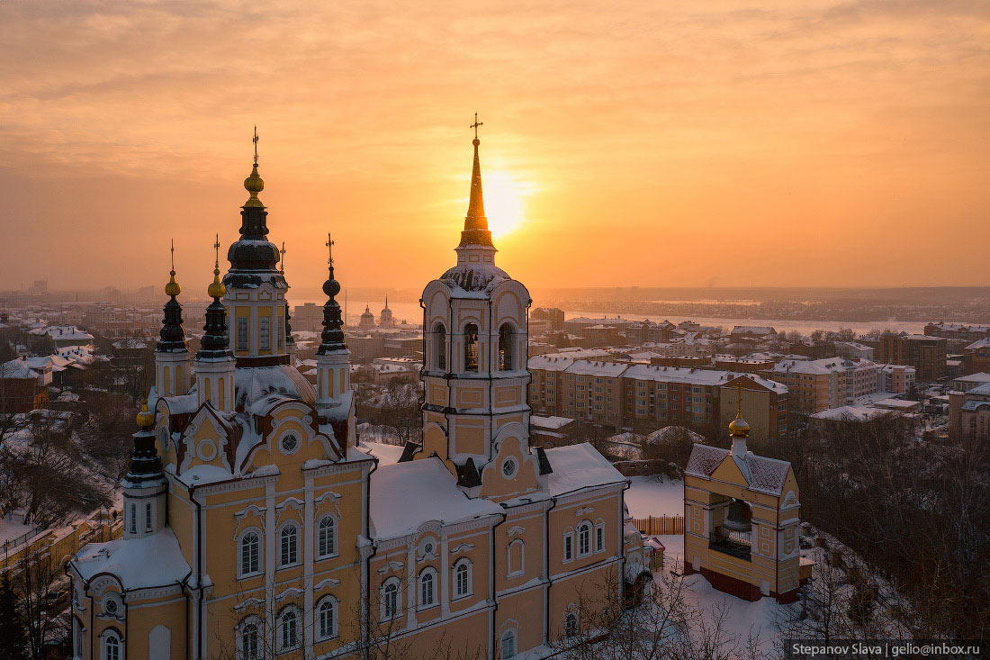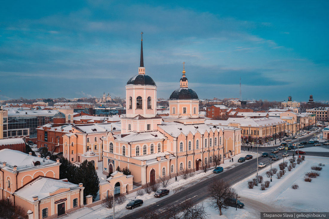28. Богоявленский Кафедральный собор, один из древнейших храмов Томска. В 1630 году на его месте стояла деревянная церковь, а в 1777 году заложили нынешний каменный собор. Его нижний этаж был освящён в 1784 году в честь Богоявления Господня.