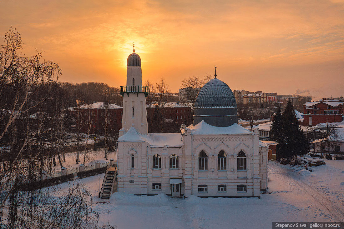 46. Белая соборная мечеть. Построена в 1913 году по проекту главного губернского архитектора Андрея (Генриха) Лангера. Автор десятков проектов, в том числе нескольких томских церквей, синагоги, драматического театра.