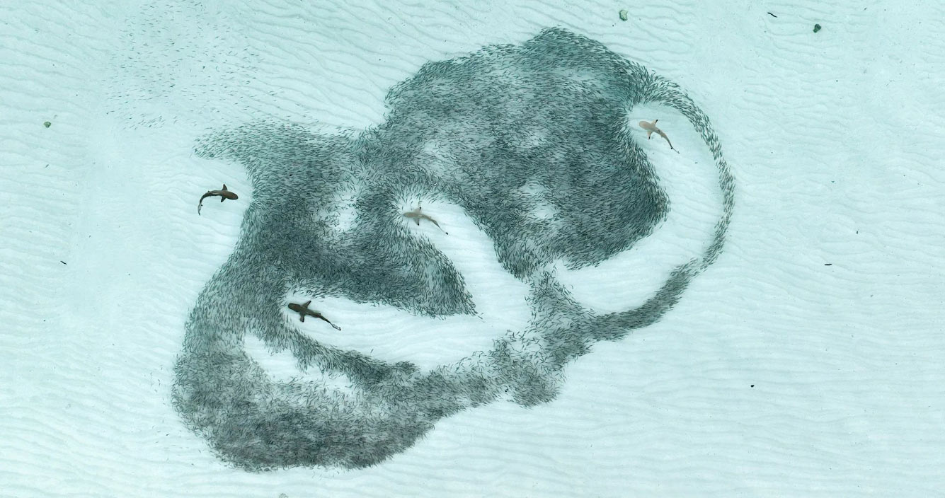 Акулки пытаются спастись от черноперых рифовых акул. (Фото Angela Albi & August Paula):