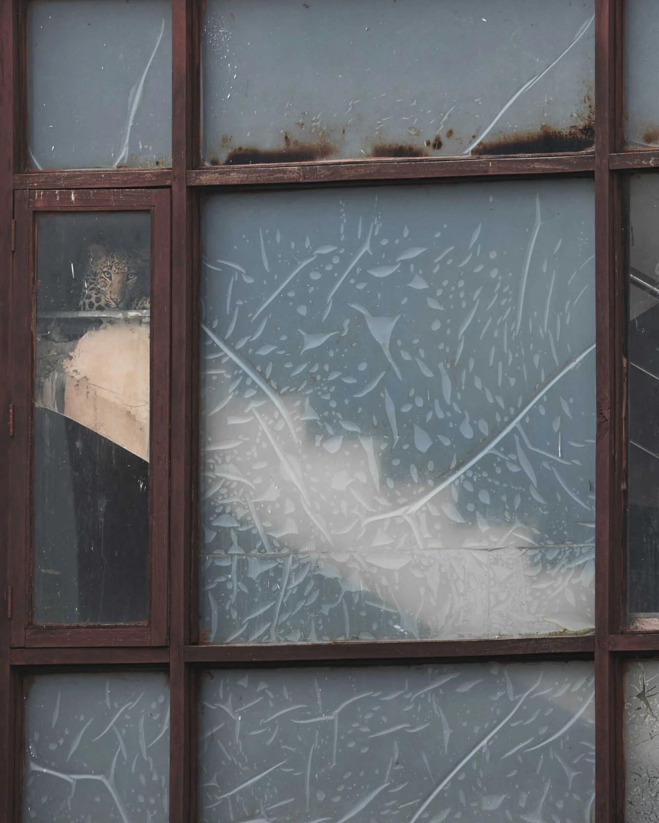 Леопард заглядывает в оконную раму. (Фото Chaitanya Rawat):