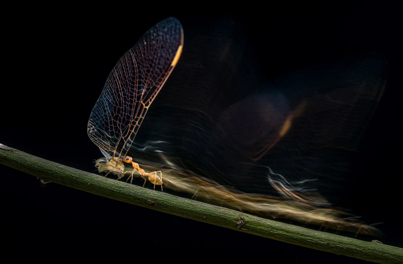 Муравей-ткач тащит стрекозу. (Фото Padmanava Santra):