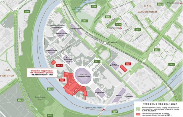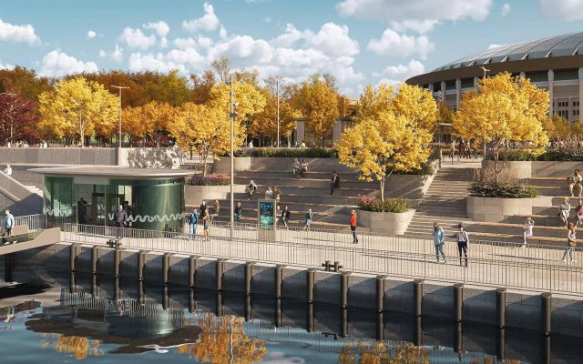 Одна из самых известных спортивных арен мира получит новую жизнь: запланировано благоустройство центральной площади и причала. Летом там появится пруд с уютными шезлонгами и столиками, а зимой — каток. Причал оборудуют для швартовки электрических водных трамвайчиков.