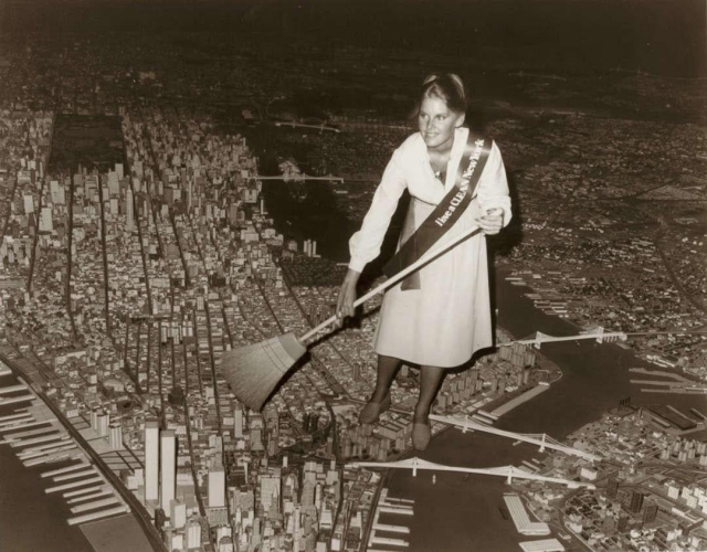 Женщина подметает Нью-Йорк. Это фотополотно в масштабе 1:1200 на Всемирной выставке, 1964 год.