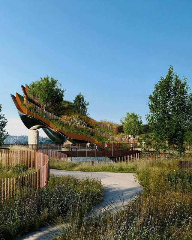 Английская студия Heatherwick Studio, известная своими смелыми архитектурными решениями, представила новый грандиозный проект. В самом центре реки Хан в Сеуле появится футуристический парк Soundscape, который напоминает настоящий оазис посреди городской суеты.