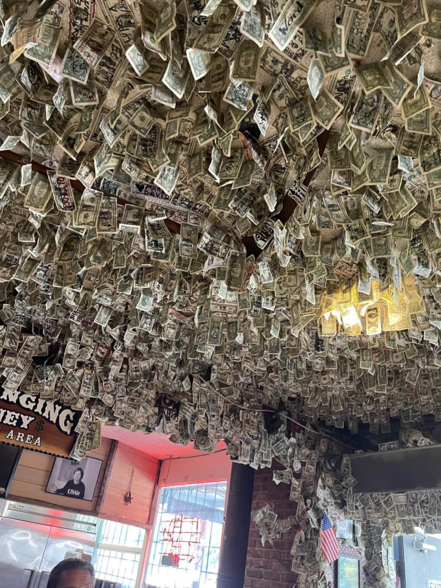 На потолке этого бара приклеено более 10 000 долларов в однодолларовых купюрах