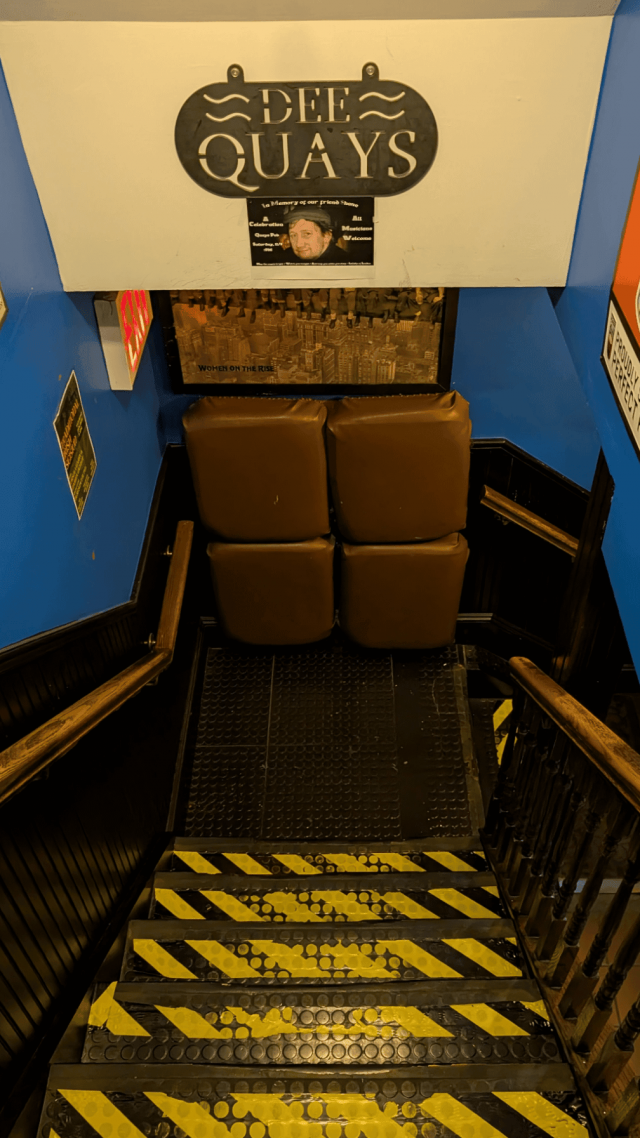 В этом пабе нужно спускаться по лестнице, поэтому на стенах установили подушки