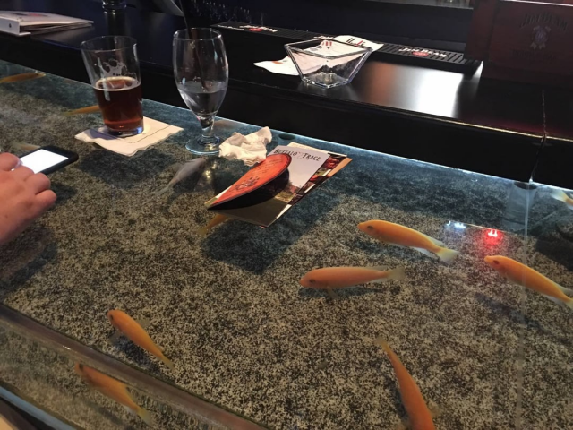 В этом пабе на сливных бачках туалетов нанесена отделка из гальки, чтобы никто не нюхал с них всякое